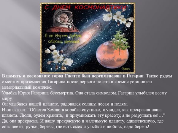 ғарышкерлер күніне арналған сынып сағаты