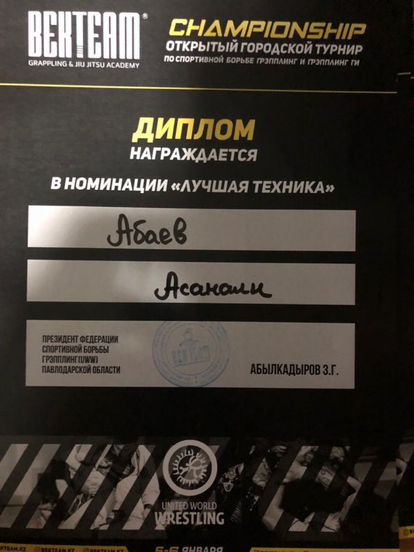 Поздравляем ученика 3 «З» класс Абаева Асанали с победой в открытом турнире по грэпплингу. А также с полной победой в номинации «Лучшая техника».
