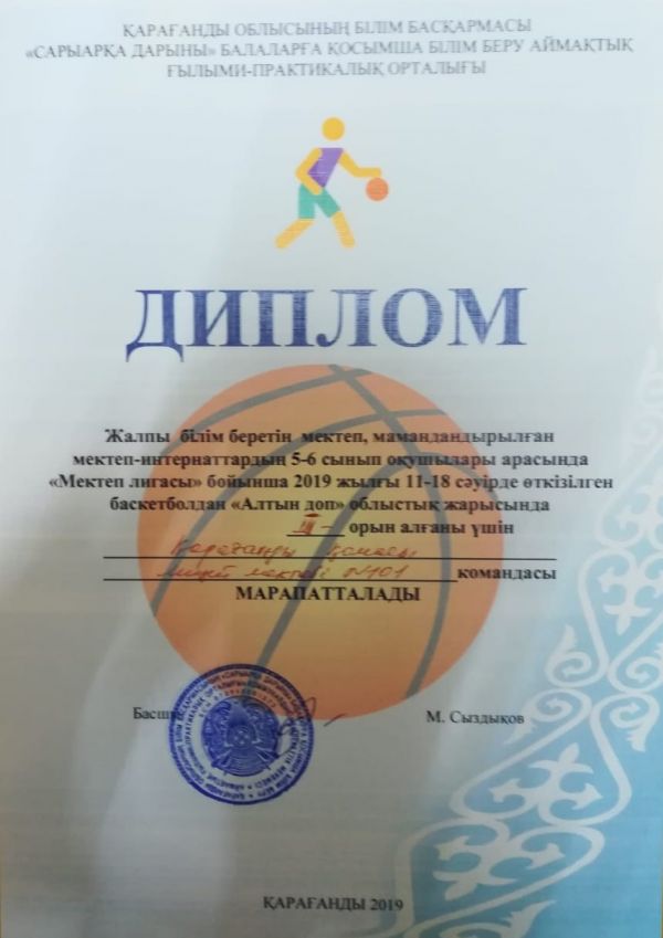 Біздің мектептің командасы баскетболдан "мектеп лигасы" бағдарламасы аясында облыстық жарыстарда 3 орынға ие болды.