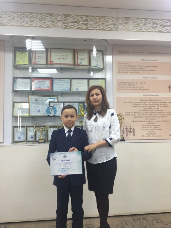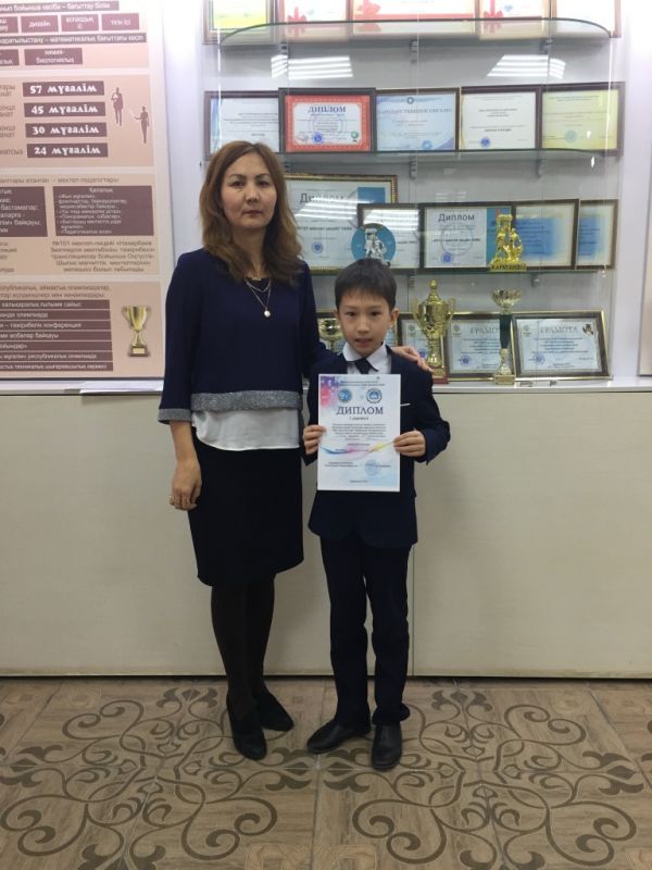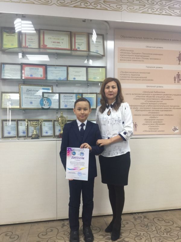 Поздравляем победителей Национальной Интернет Олимпиады учеников 3Д класса КГУ «Школа – лицей №101» Селиванова Арсения за занятое 2 место и Жунуспекову Малику за занято…