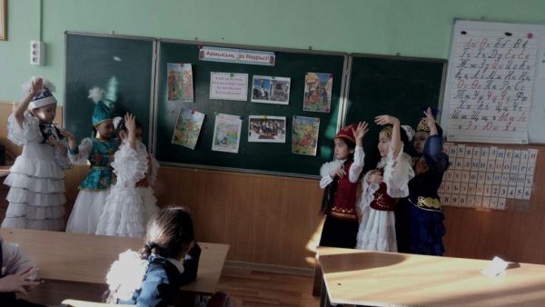 1«Б» сыныбында «Армысың әз Наурыз» сынып сағаты болды. Оқушылар ән айтып, би билеп өз өнерлерін көрсетті. Викториналық сұрақтар қойылды. Ұлттық ойын ойналды.
