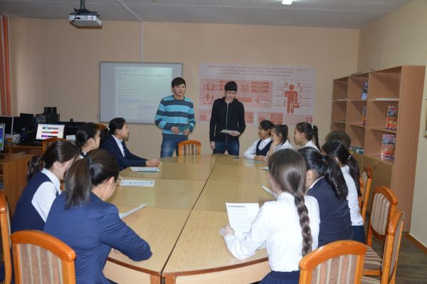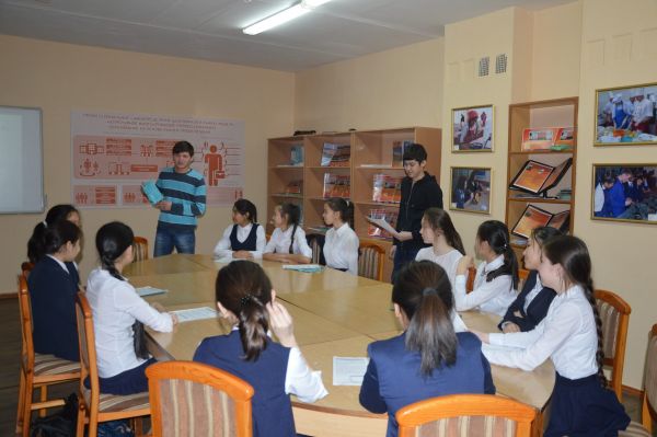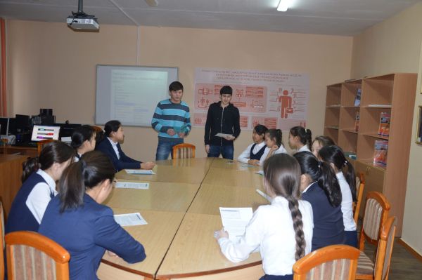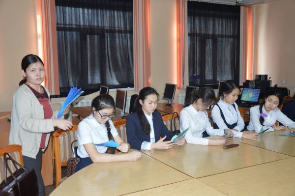 08.02.16ж Ж.Қ.Букенов атындағы Банк колледжінің ақпараттық жүйелер факультетінің 3 курс студенттері Камал Досым, Нусупов Алмас мектеп-лицеймізге келіп, 8 ә сынып қызбалаларымен кәс…