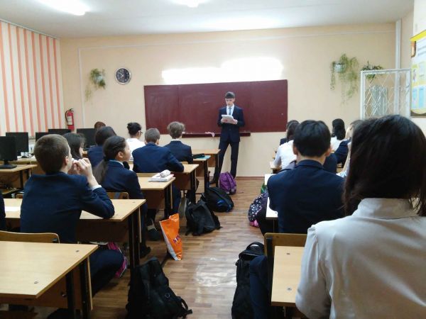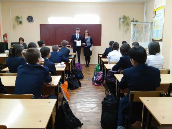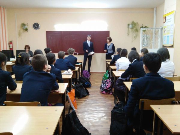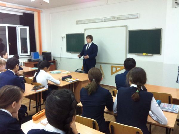 С 8 по 13 февраля в ШЛ№101 была проведена неделя математики. В понедельник 08.02.2016 г. учащиеся 10А класса провели классные часы во всех классах.