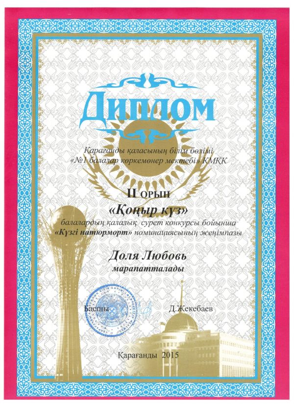 Диплом 2 орын – Доля Любовь, «Күзгі натюрморт» номинациясында;