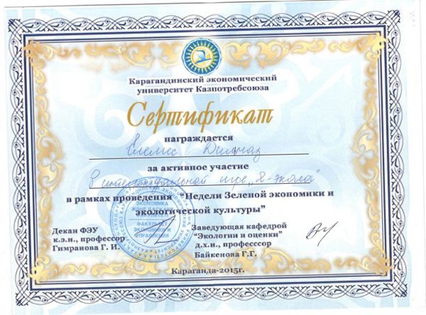 20.11.2015ж. Қарағанды Экономикалық Университеті, экология факультеті «Жасыл экономика және экологиялық мәдениет» тақырыбында өткен&…