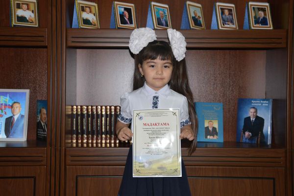 Халықаралық "Мен - зерттеушімін" байқауы шеңберінде бастауыш сынып оқушылары арасында өткен Облыстық фестивальдағы үздік оқу-зерттеу жұмыстары үшін 1 Б сынып оқушылары Хасен Шынар ме…
