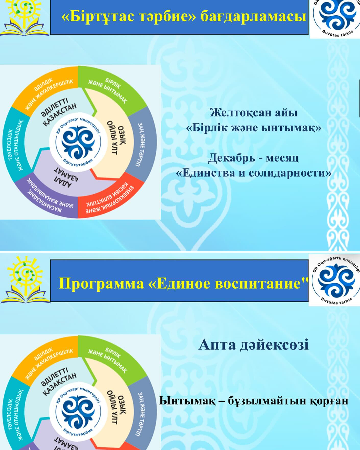 Программа воспитания «Біртұтас тәрбие…