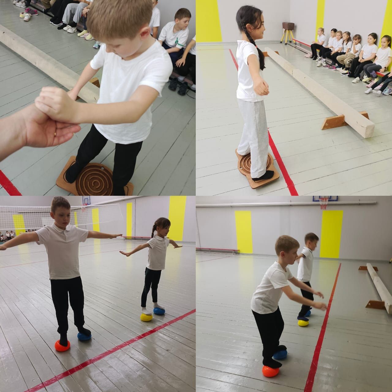 3-сыныпта теңдестіргіш тренажерлармен және жартылай сфералармен қызықты сабақ өткізілді.