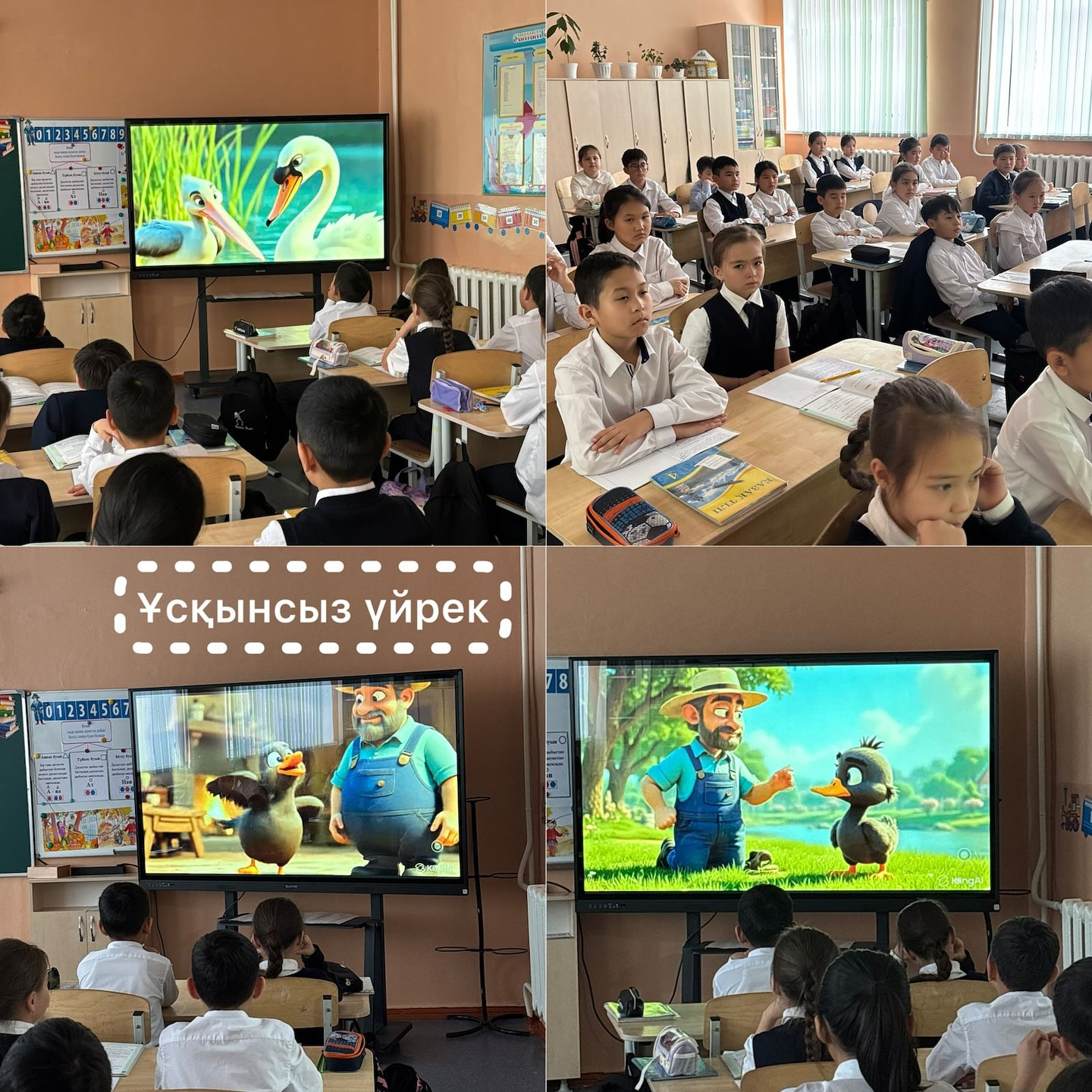 Толеранттылық апталығы аясында 4 Л сынып оқушылары «Жаман үйрек» мультфильмін тамашалады. Өзімізді және айналасындағыларды біз сияқты қабылдаудың қаншалықты маңызды екендігі туралы әңгім…