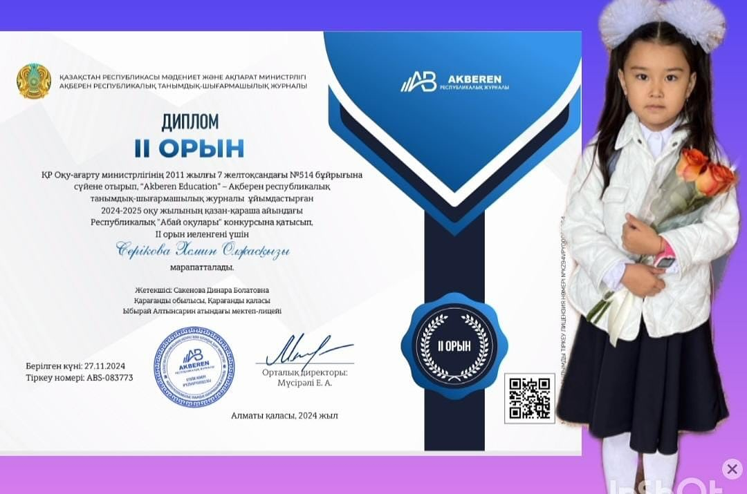 Қарағанды қаласының 2-оқушылар сарайында өткізілген «Өнерлі отбасы» шығармашылық сайысында 9 в сынып оқушысы Қабдырай Ибраһимнің отбасы «Ең шығармашыл отбасы» номинациясының…