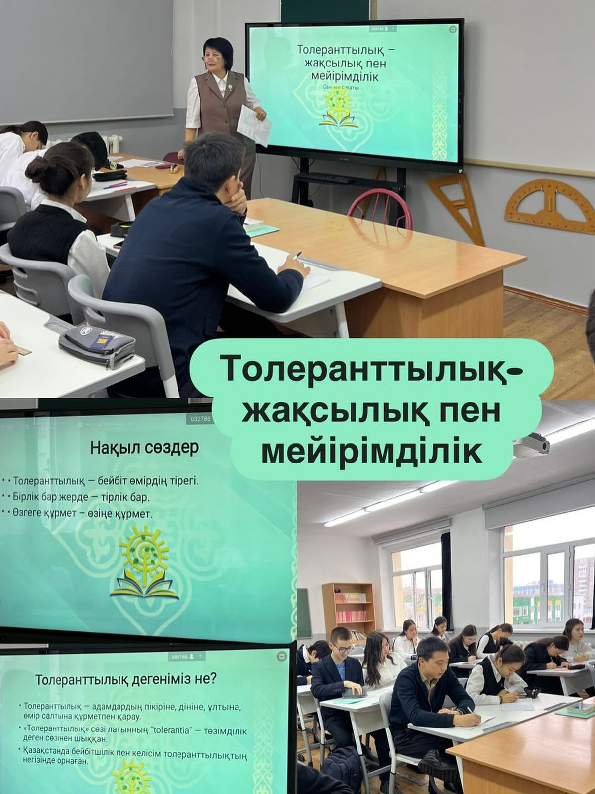 Бүгін, “Толеранттылық — жақсылық пен мейірімімділік” тақырыбында сынып сағаты өтті. Оқушылар ізгілік пен өзара сыйластықтың мәнін терең түсінді. Толеранттылық — адамгершілі…