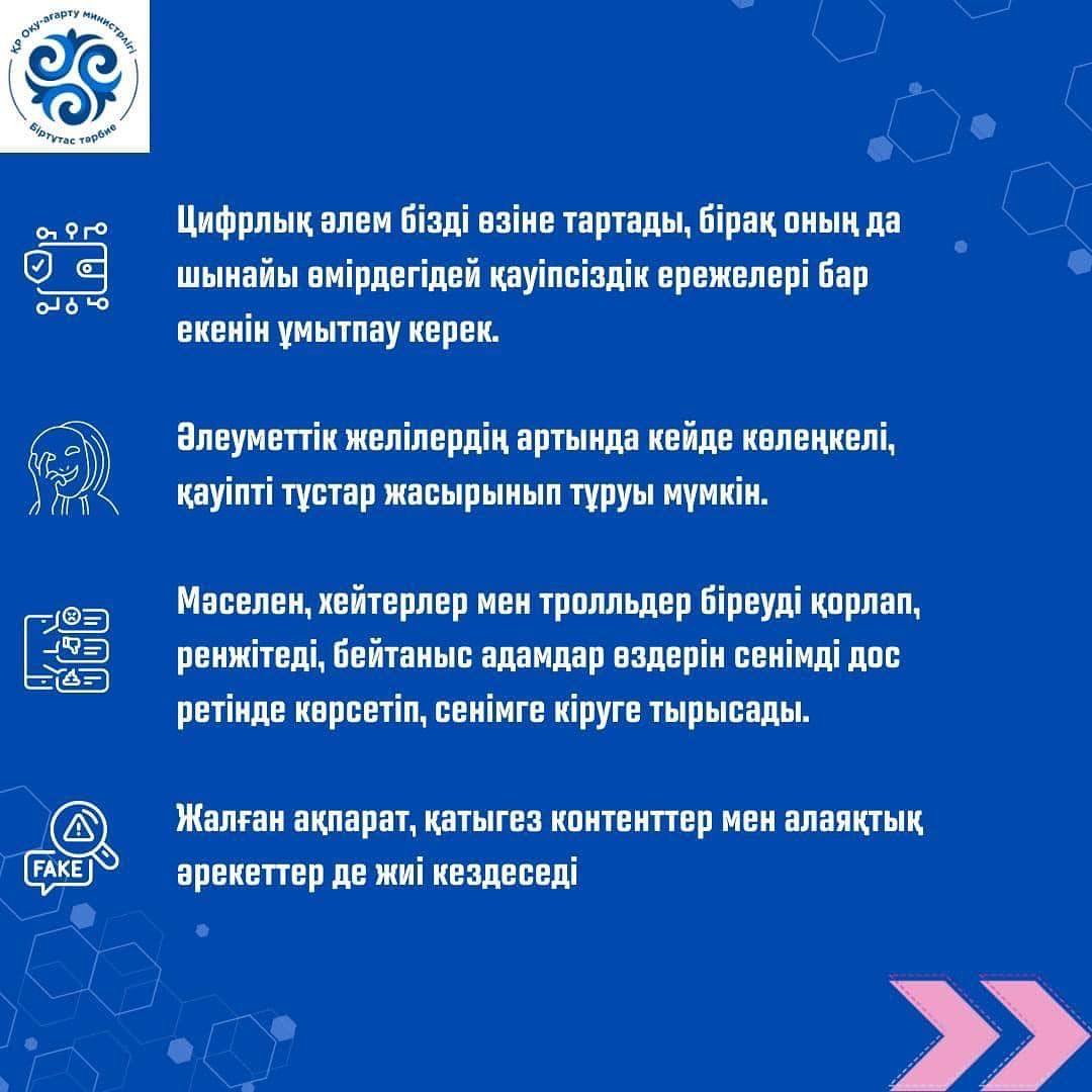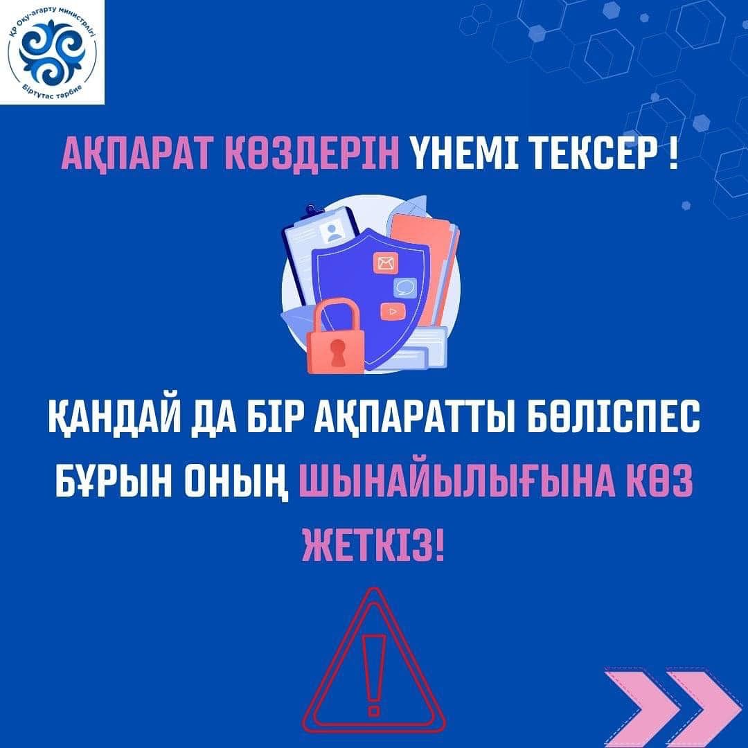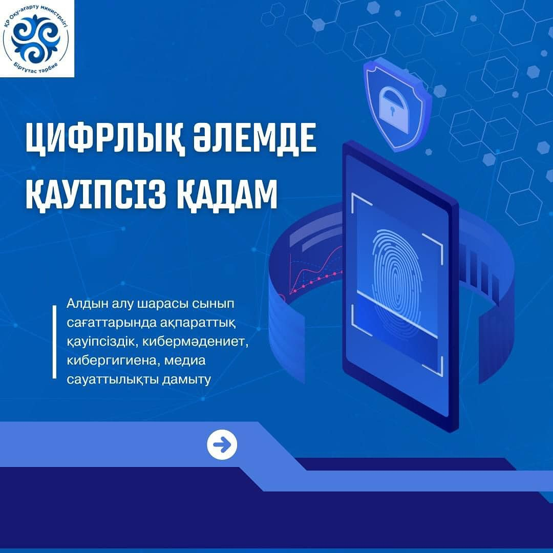 #Біртұтас_тәрбие бағдарламасы шеңберінде “Цифрлық әлемде қауіпсіз қадам” алдын алу шарасы жоспарланған. Алдын алу шарасы сынып сағаттарында ақпараттық қауіпсіздік, кибермәдениет, киберги…