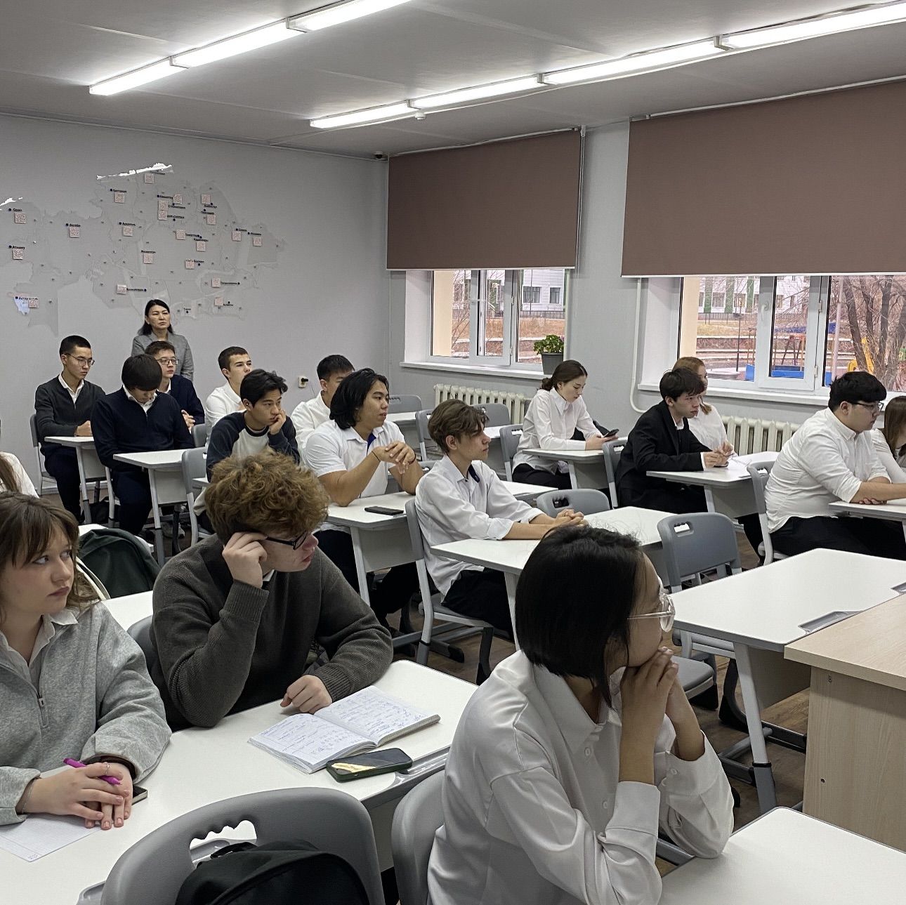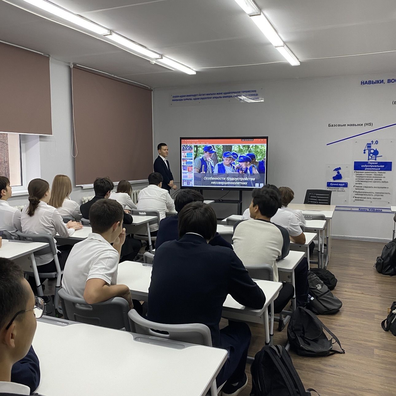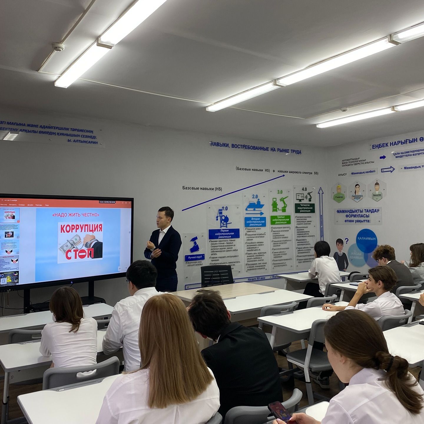 03.11.25 в 11А классе был проведен классный час на тему «Надо жить честно» и «Особенности трудоустройства несовершеннолетних» Ученик 11А клааса Амангельдинов А. выступил с п…