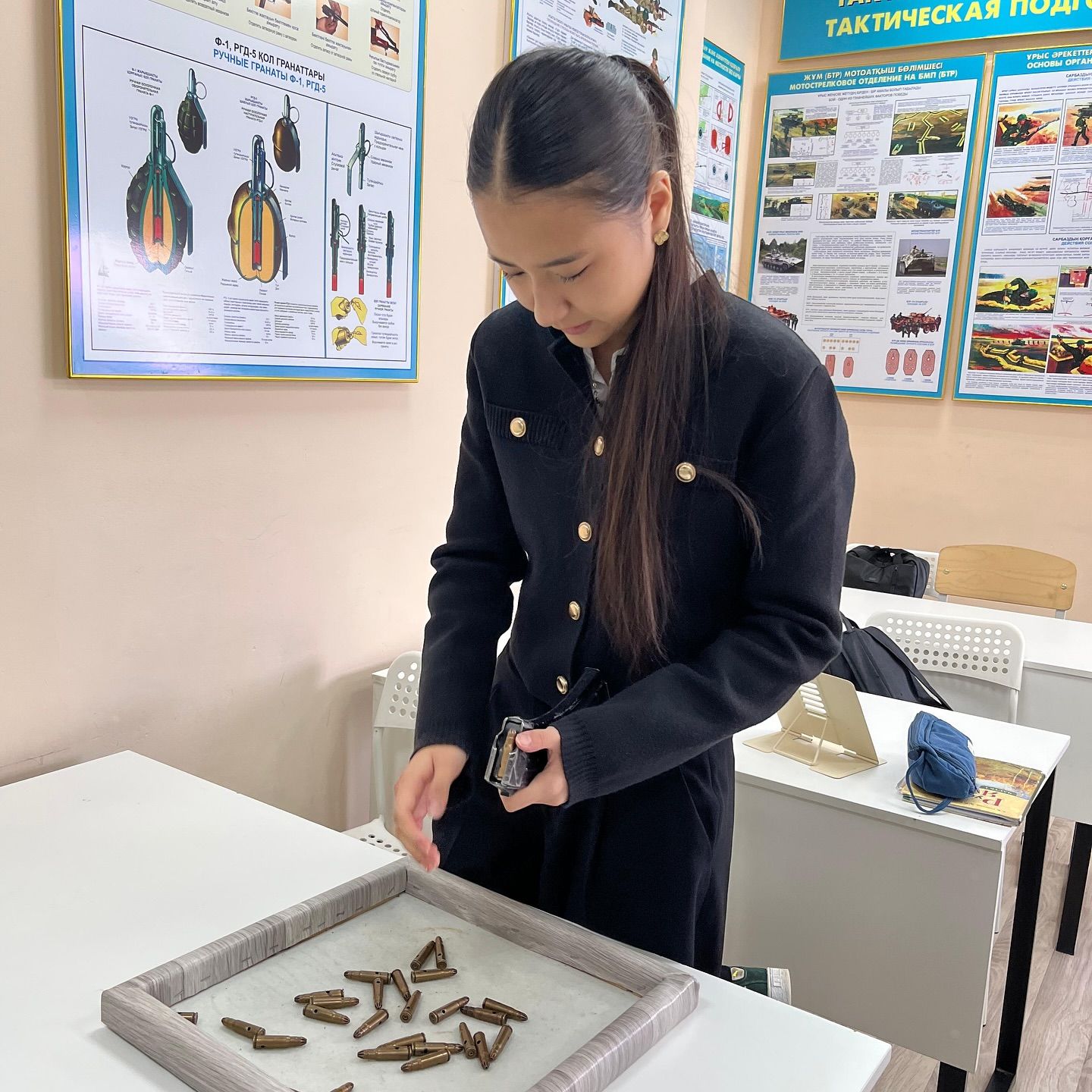 “Жас сарбаз” үйірмесі. 10а сынып оқушылары. Автоматтан атыс жүргізу және оқжарақтан оқты оқтау тәсілдері бойынша жаттығулар. 3.11.2025 күні. АӘТД пәнінің мұғалімі Есентаев Нуржан Тлеу…