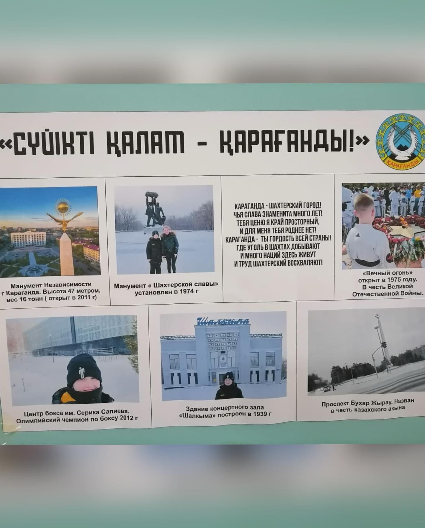 Ученики 4 Д класса к юбилею города оформили фотовыставку «Моя Караганда». В ней запечатлили в фотографиях самые любимые места в городе. Были выполнены и стенгазеты.