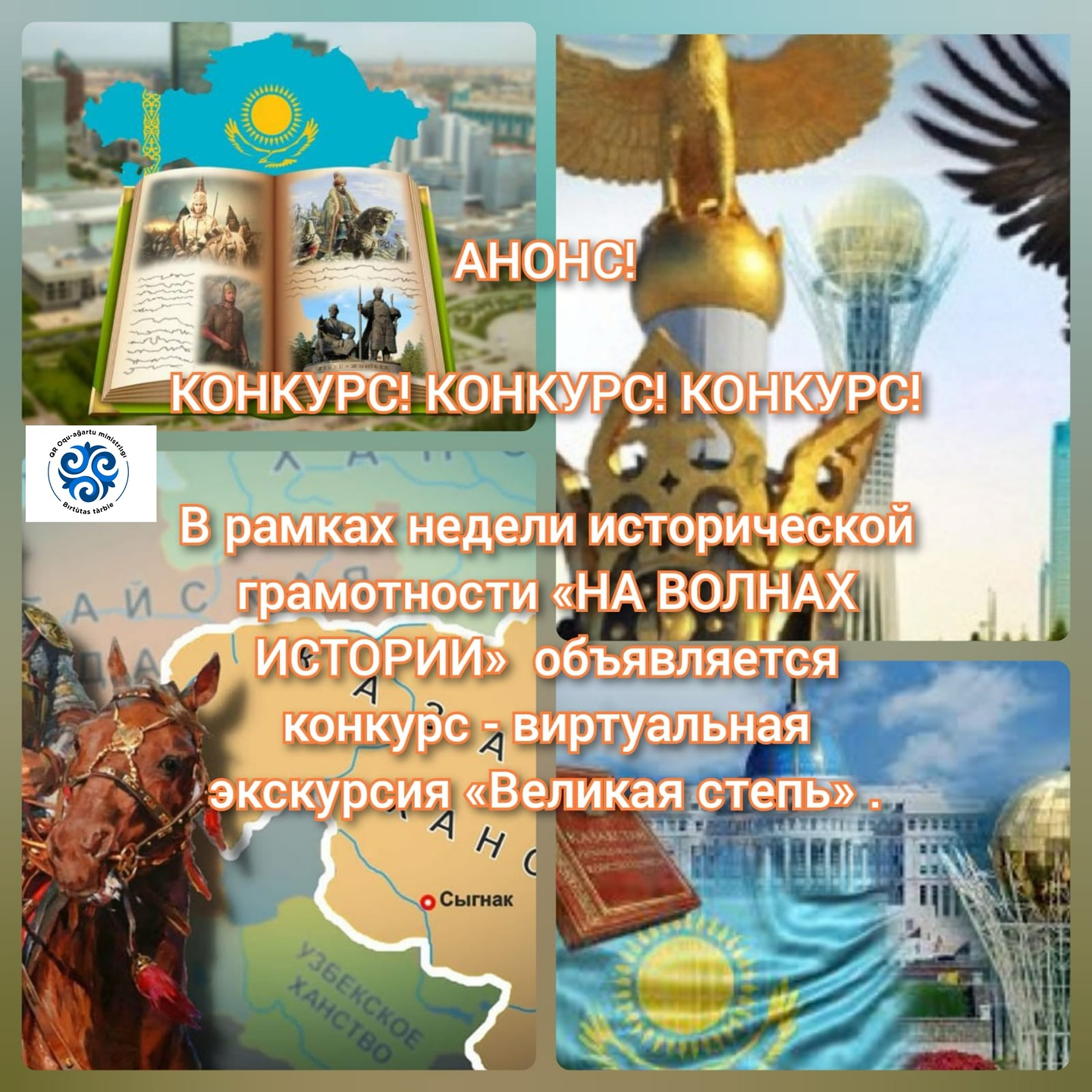 В рамках недели исторической грамотности «НА ВОЛНАХ ИСТОРИИ» объявляется конкурс - виртуальная экскурсия «Великая степь» .