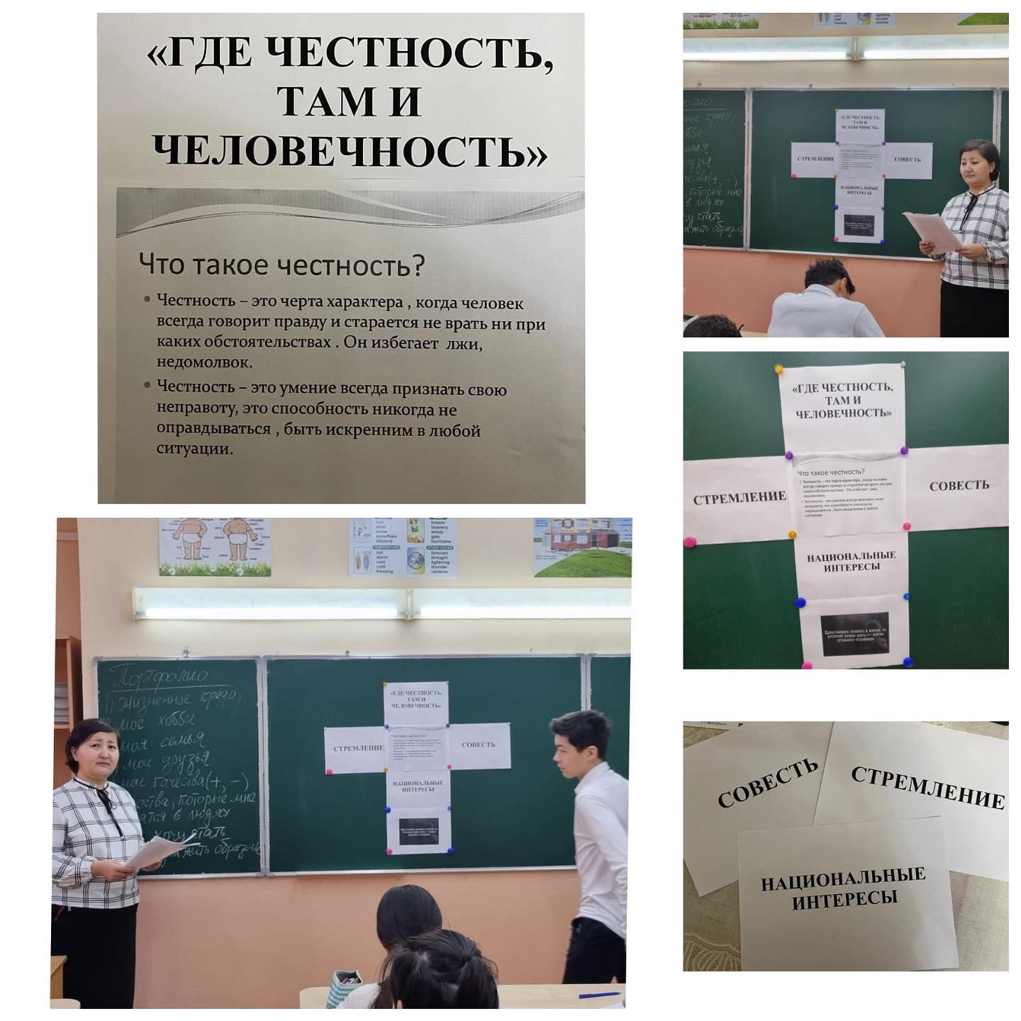 В рамках пропагандирования целостного формирования и воспитания поколения с общечеловеческими и национальными ценностями в 9Д классе прошел классный час на тему «Где честность там и человечнос…