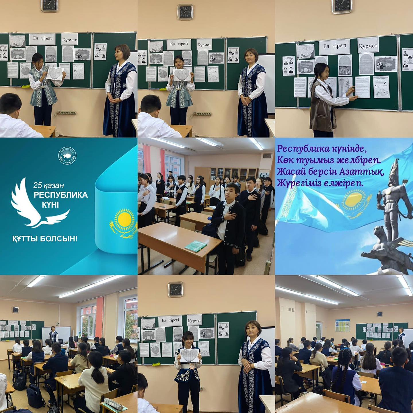 23 октября, в 8 классе А, 25 октября, в честь Дня Республики прошел воспитательный час «Ел тірегі».