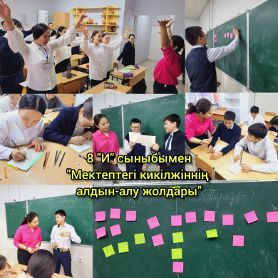 8 "И" сыныбымен "Мектептегі кикілжіннің алдын-алу жолдары" атты тренинг өткізілді. Мақсаты: оқушылардың өз-мінез құлқы туралы хабардар болуына ықпал ету, қақтығыстарды оң шешу қа…