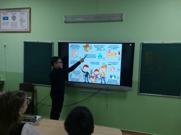 23.01.2023 в 7 «К» классе (кл.рук Шах Л.А.) был проведен кл. час , на тему: «Профилактика ОРВИ и грипп». Где учащиеся класса: Матулевич Владимир и Медетбек Алиби подгот…