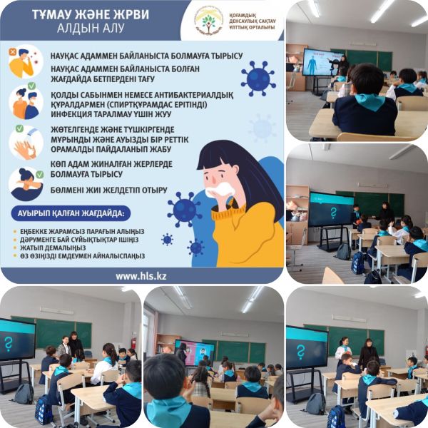 23.01.2023 5"В" сыныбында "Тұмау және ЖРВИ алдын алу" тақырыбында сынып сағаты өтті. Балаларға тұмау туралы,рның алдын алу жолдары мен салауатты өмір салты туралы мағлұматтар бер…
