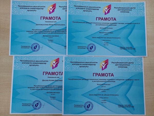 Поздравляем ученика 3" З " класса Жумалиева Искандера с отличными результатами в Республиканской олимпиаде по предметам: Математика и Английский язык. Учителя: Долгомыслова Ю.А,  Дос…