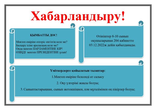 28.11 күні 7"а" сыныбында "Біз салауатты өмір салтын қалаймыз" атты сынып сағаты өтті. оқушылардың бойына адами қасиет құндылықтарын сіңіре отырып, ұйымшылдық, адалдық, әркім өз…