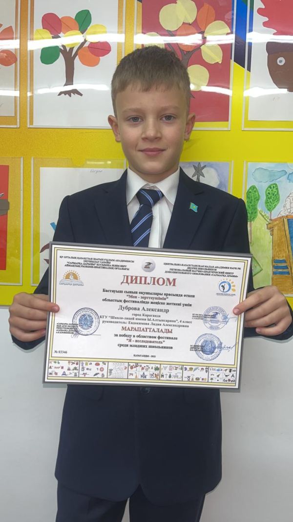 Дуброва Александр, ученик 4Д класса, стал победителем в областном фестивале «Я- исследователь» среди младших школьников