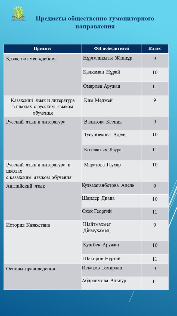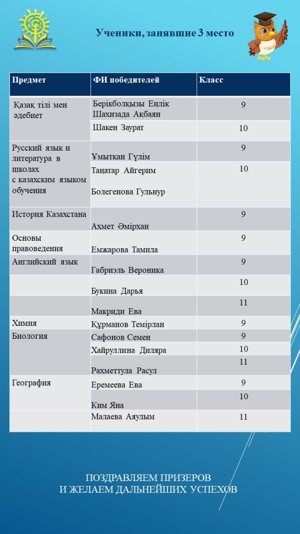 Победители школьного этапа Республиканской предметной олимпиады по 15 образовательным предметам 28.10.2022