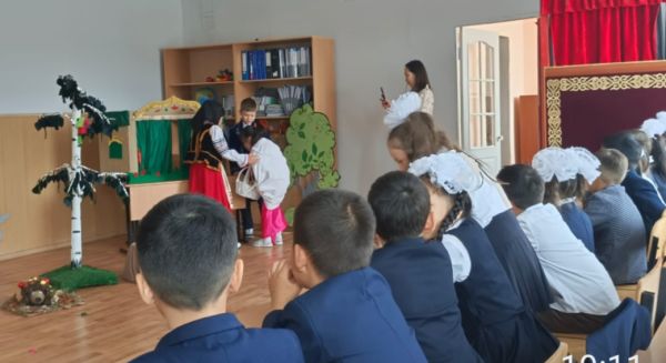 Қуыршақ театры оқу жылының аяғында 3 В сыныбы "Маша мен аю" атты музыкалық ертегісіне 1 сынып оқушылары шақырылып, музыкалық бимен ,әндермен ертегі қойды.Көрермендер ертегіні ш…