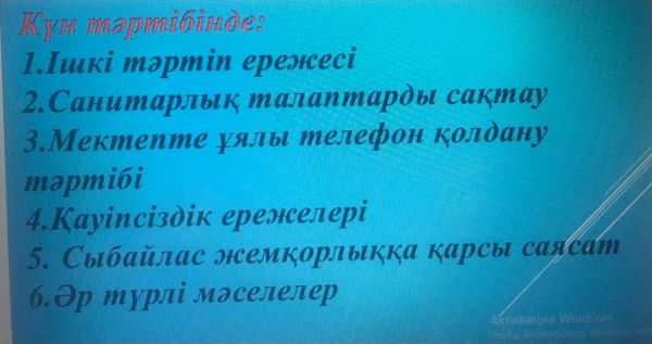 11 қыркүйек күні 9 «А» сыныбының ата-аналар жиналысы өтті. Күн тәртібінде бірнеше мәселелер қарастырылды: