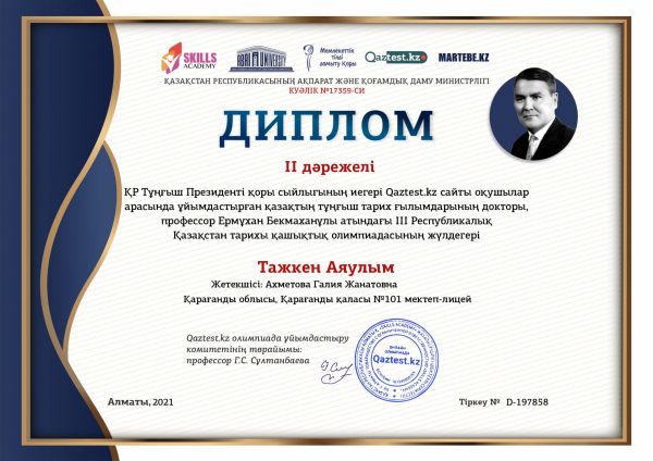 ҚР Тұңғыш президенті қоры сыйлығының иегері Qaztest.kz сайты оқушылар арасында ұйымдарстырған қазақтың тұңғыш тарих ғалымдарының докторы, профессор Ермұхан Бекмаханұлы атындағы ІІІ Ре…