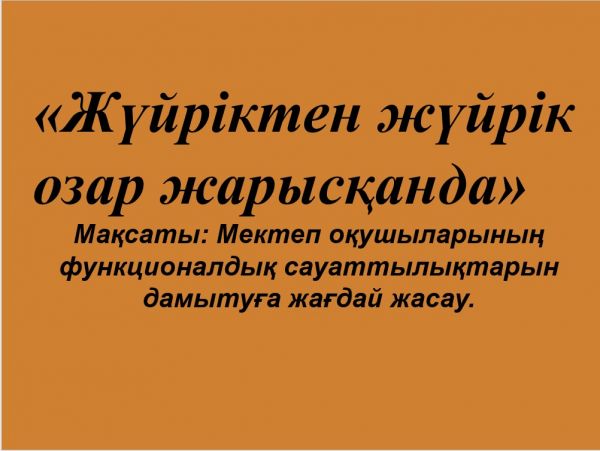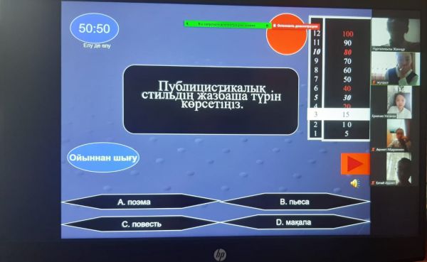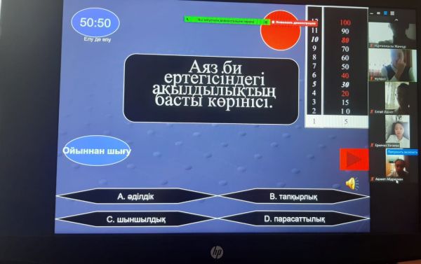 21.01.2021 ж. «ХХІ ғасыр - сауатты ұрпақ ғасыры!» апталығы аясында 11 «Б» сыныбында қазақ тілі мен әдебиеті сабағында «Жүйріктен жүйрік озар жарысқанда» шарасы ба…