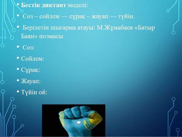 «Оқу сауаттылығы» апталығы аясында Мағжан Жұмабаевтың «Батыр Баян» поэмасының негізінде 7 «А» сынып оқушылары бестік диктант жазды. Мақсаты: оқушылардың сауаттылы…