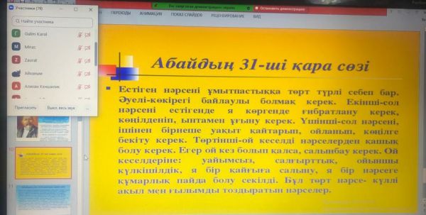 "Жақсы кітап - жан азығы" тақырыбы аясында 26 қазан күні 8 "А" сыныбында Абай Құнанбайұлының "Қара сөздері" тақырыбында сынып сағаты өтті. Оқушыларға…