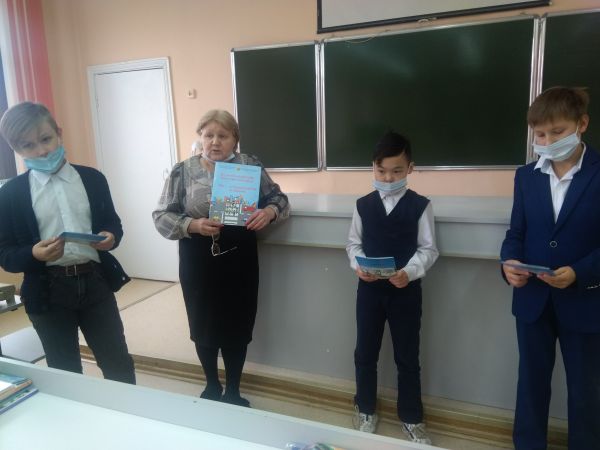 Ученицу 8в класса Карапетьян Ксению, занявшую 1 место в республиканском интеллектуальном конкурсе «Сұнқар» по казахскому языку. (Учитель Жумагулова А.Т.)