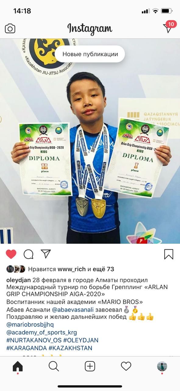 Поздравляем с отличным выступлением Абаева Асанали в городе Алматы! Асанали завоевал золотую и серебряную медали на Международном турнире по греппленгу. Так держать!