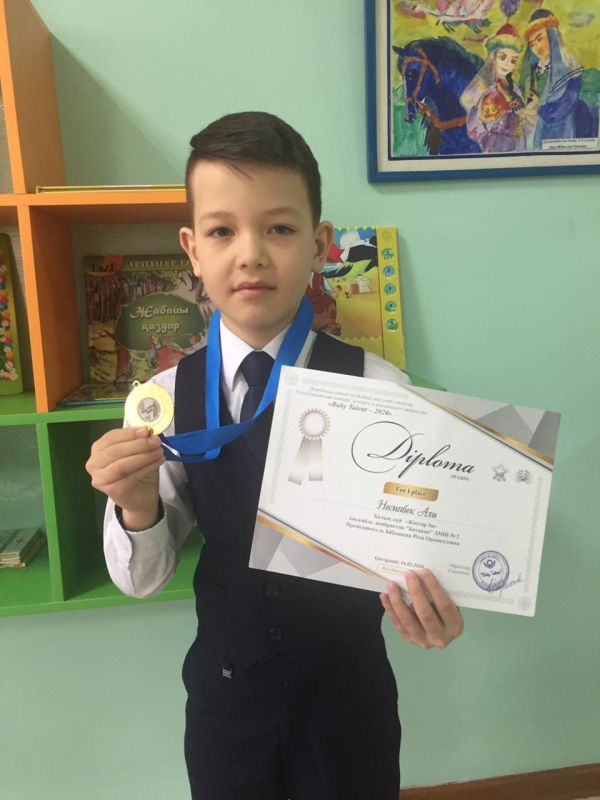 Республикалық балалар және жасөспірімдер арасында өткен "Baby Talent-2020" шығармашылық сайысында 2 "Ә" сынып оқушысы Несіпбек Әли "Жастар күйін" орындап ж…
