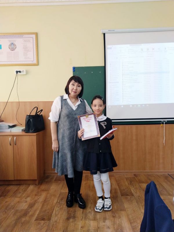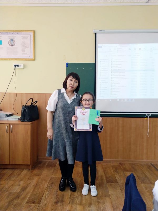 Поздравляем Алмаз Шахрезат ученицу 4Б класса за занятое 2 место в республиканской олимпиаде по русскому языку, проводимой Республиканским центром дистанционных олимпиад, город Алматы. Руковод…