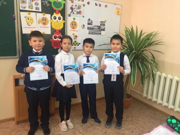 Поздравляем!!! В Республиканском дистанционном конкурсе «Творчество без границ» 1 места заняли учащиеся 3 Ә класса Кушкимбаев Алдияр, Марат Султан, Сыдырманова Айсана и Тұрсын Әмі…