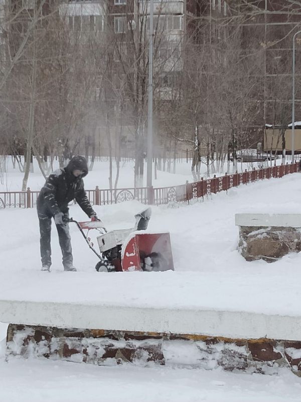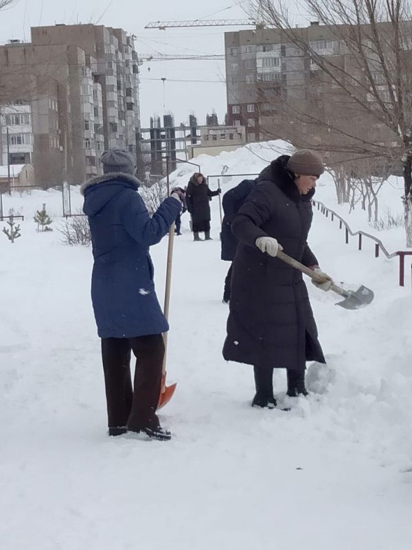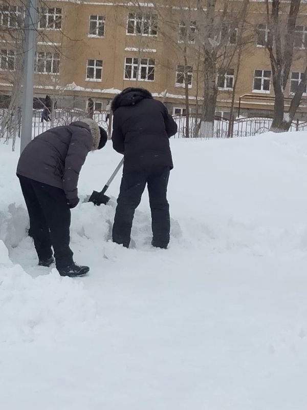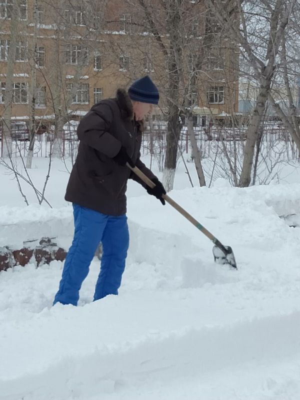 Школа-лицей №101. Мы за чистоту и порядок. Уборка территорий от снега.