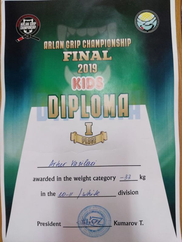 Ученика 6 Г класса Василаки Артур за занятое I место в финальных соревнования по бразильскому джиу-джитсу.