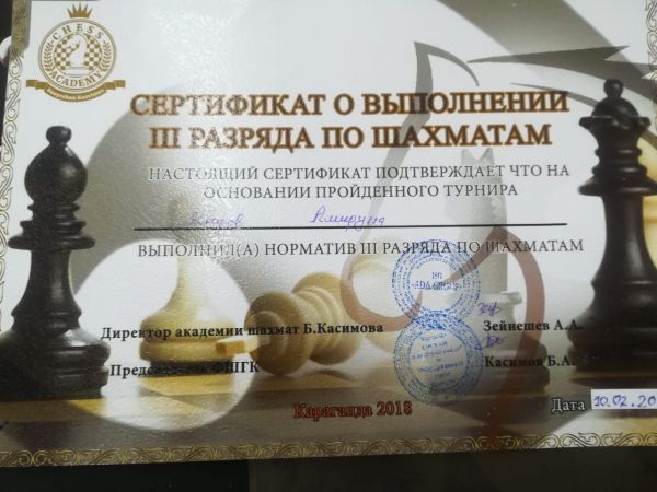 Поздравляем ученика 3 "Б" класса Аскарова Амируллы, занявшего 2 место в городском турнире по шахматам, за выполнение норматива 3 –го разряда награжден сертификатом и медалью. Человек…