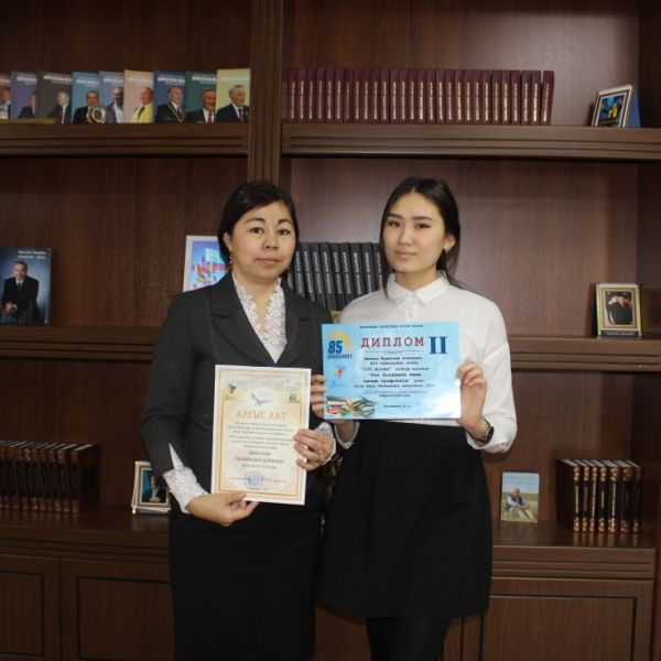 Поздравляем ученицу 11 «А» класса школы-лицея № 101 с победой в городском конкурсе исследовательских работ и творческих проектов "Зерде". В детско-юношеской библиотеке им.Бекту…