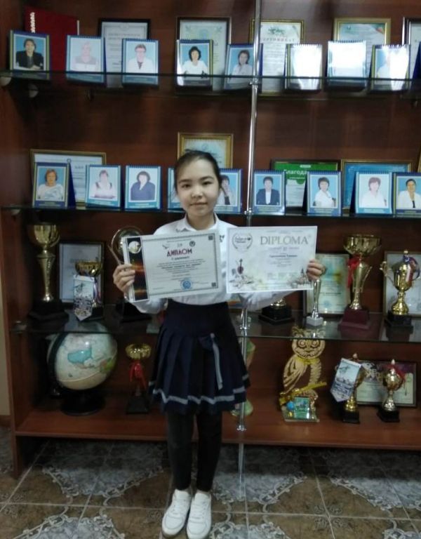 Ученица 4 "Ә" класса Анель Машрапова заняла II место и награждена Дипломом II степени в Х региональной олимпиаде им. Н.Каирбаева по математике.