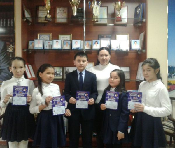 Учащиеся 5 «А» класса Мұратқызы Адина, Қалқаман Нұрай, Тлеуова Аянат, Мұқаш Гүлім, Төлепберген Санжар заняли 1 место и Танирбергенов Мирас награжден дипломом ІІ степени в международном к…
