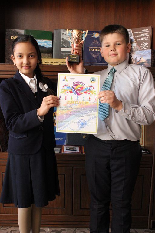 "Шуақты көктем" республикалық қашықтық жобасына қатысып дипломмен марапатталған 2В сынып оқушылары: Саин Камила, Тәшен Бейбарыс. Жоба жетекшісі: Маева Т.Б.