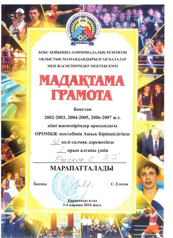 Ученик 8Д класса, Рычков Салим, занял 1 место по боксу! Желаем дальнейших успехов и побед!