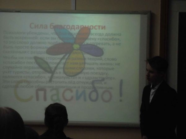 29 февраля состоялся классный час в 7Б на тему «День благодарности». Группа под руководством Мукужановой Амины рассказала ребятам об истории этого праздника и призывала благодарить людей…