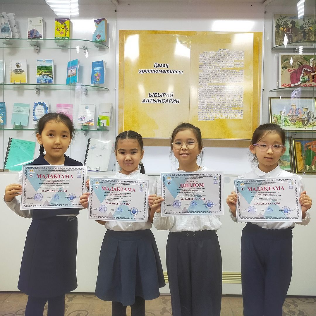 2 сынып оқушыларын құттықтаймыз: Тулеуова Карина (диплом 3 орын), Рамазанова Малика, Абрахман Адия, Джукенова Айдана (үздік жұмысы үшін грамота).